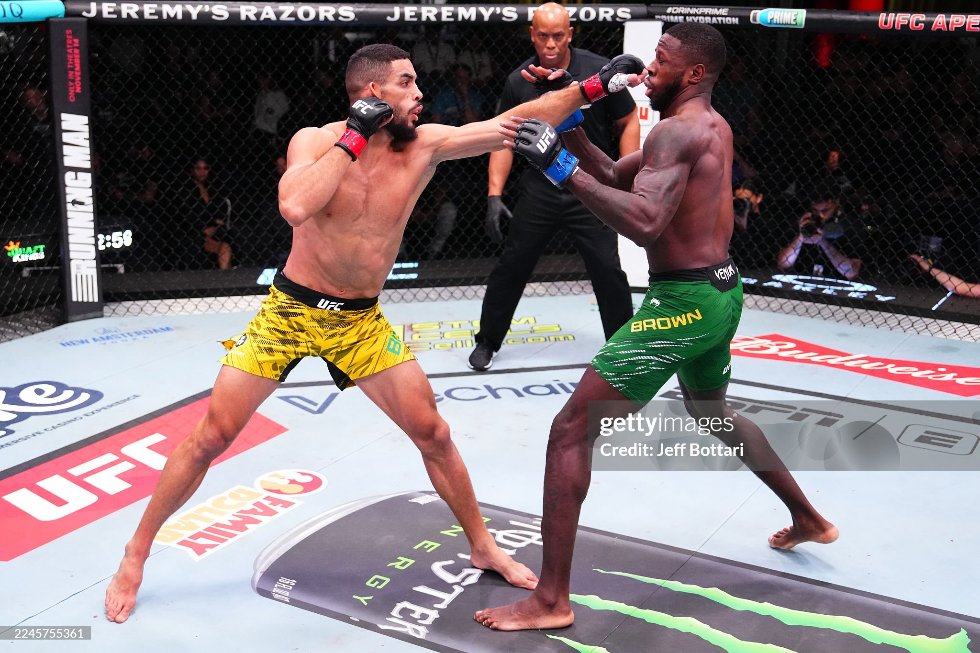O nocaute impressionante veio no segundo round, construído com controle da distância, jabs e low kicks poderosos na panturrilha esquerda de Brown. Marretinha conseguiu machucar a perna do adversário, que aos poucos foi perdendo capacidade de movimentação e se tornando alvo fácil. A joelhada veio de forma surpreendente e apagou o jamaicano.
